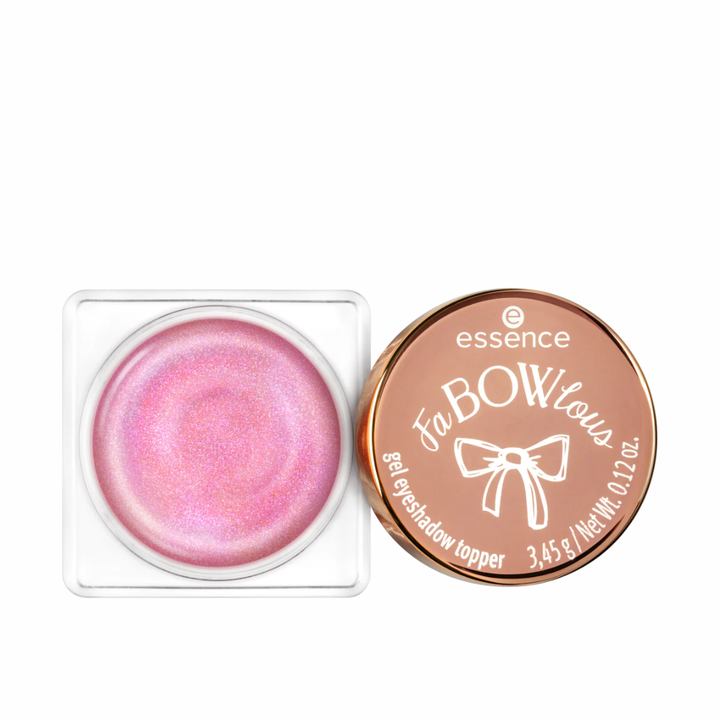 Essence FaBOWlous Gel Eyeshadow Topper transforms your eye look with multidimensional shimmer. Light-catching particles create a dazzling finish that elevates any makeup look. Wear it alone or layer over eyeshadow for an extra pop of sparkle.