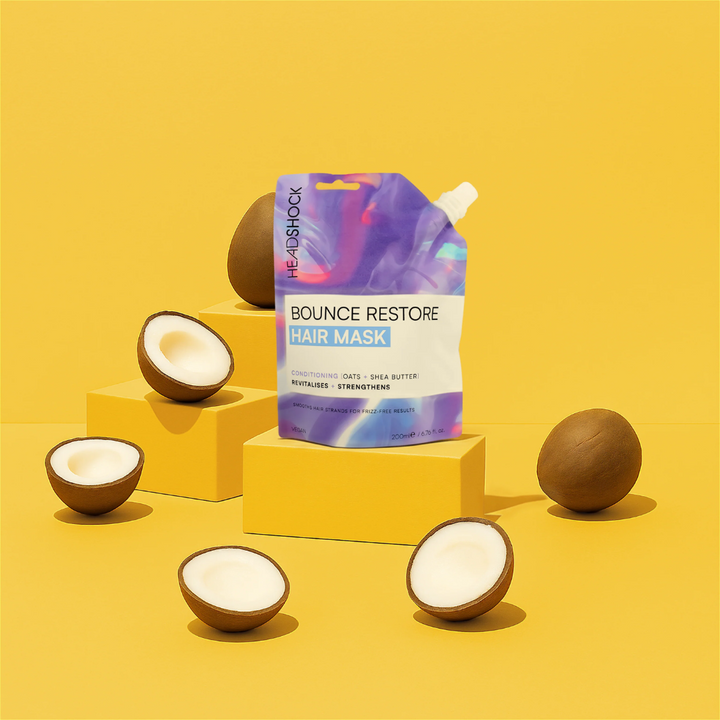 Tame your mane. With a frizz-fighting formula, this Bounce Restore Hair Mask helps to soften and smooth. Blending soothing Oats with luxuriously hydrating Shea Butter and Hyaluronic Acid, hair is left feeling silky, bouncy and conditioned.