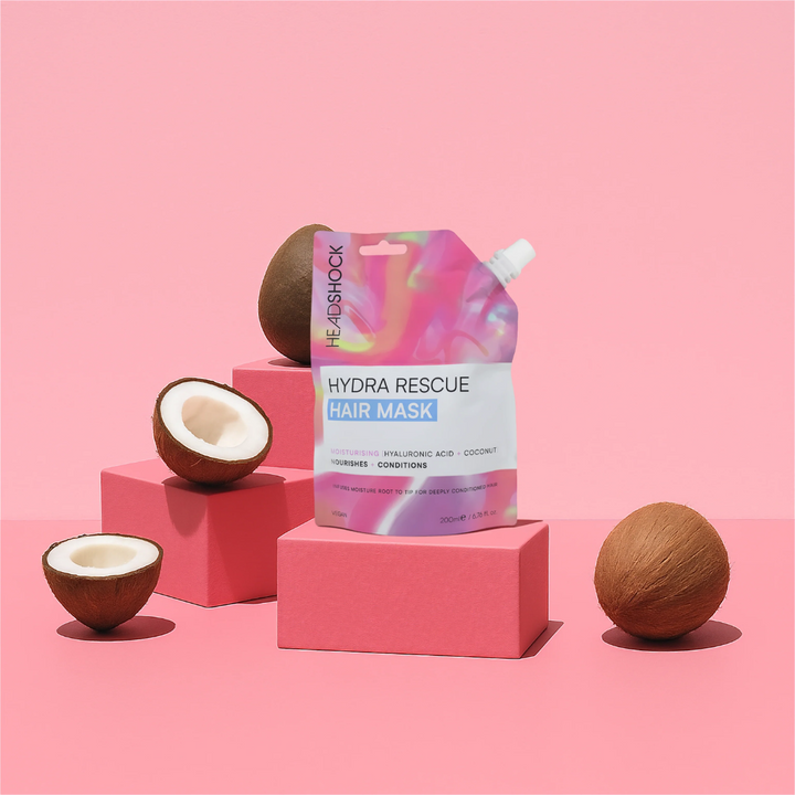 Maximise your moisture. Blending tropical Coconut Oil, Shea Butter and Hyaluronic Acid, this Hydra Rescue Hair Mask envelops your strands with a lightweight formula to help hydrate root to tip for increased bounce and gloss.