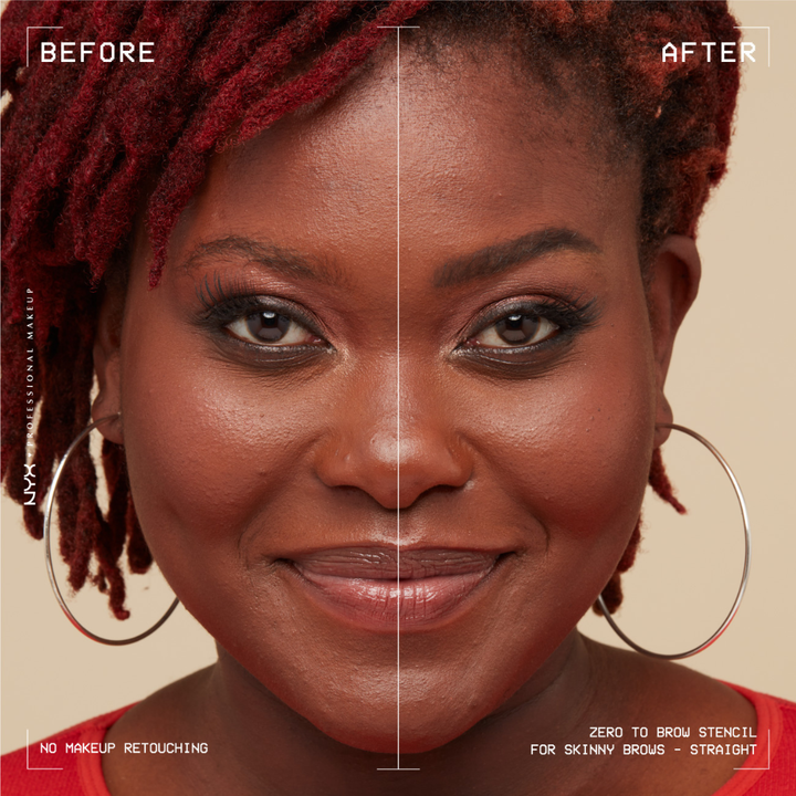 New brow innovation alert! Transform from zero to naturally filled brows, with up to 2-day wear. Easily apply the liquid gel formula with our precise doe foot applicator and blend away harsh lines with the spoolie. Freehand or use a stencil to create or perfect your shape. Choose from "skinny" or "thick" brow stencils to switch up your brow look. Go from straight, arched, round or extra-long brows. The looks are endless! This vegan brow breakthrough is transfer-resistant, fade-resistant, and smudge-resistant with up to 2-day wear.
